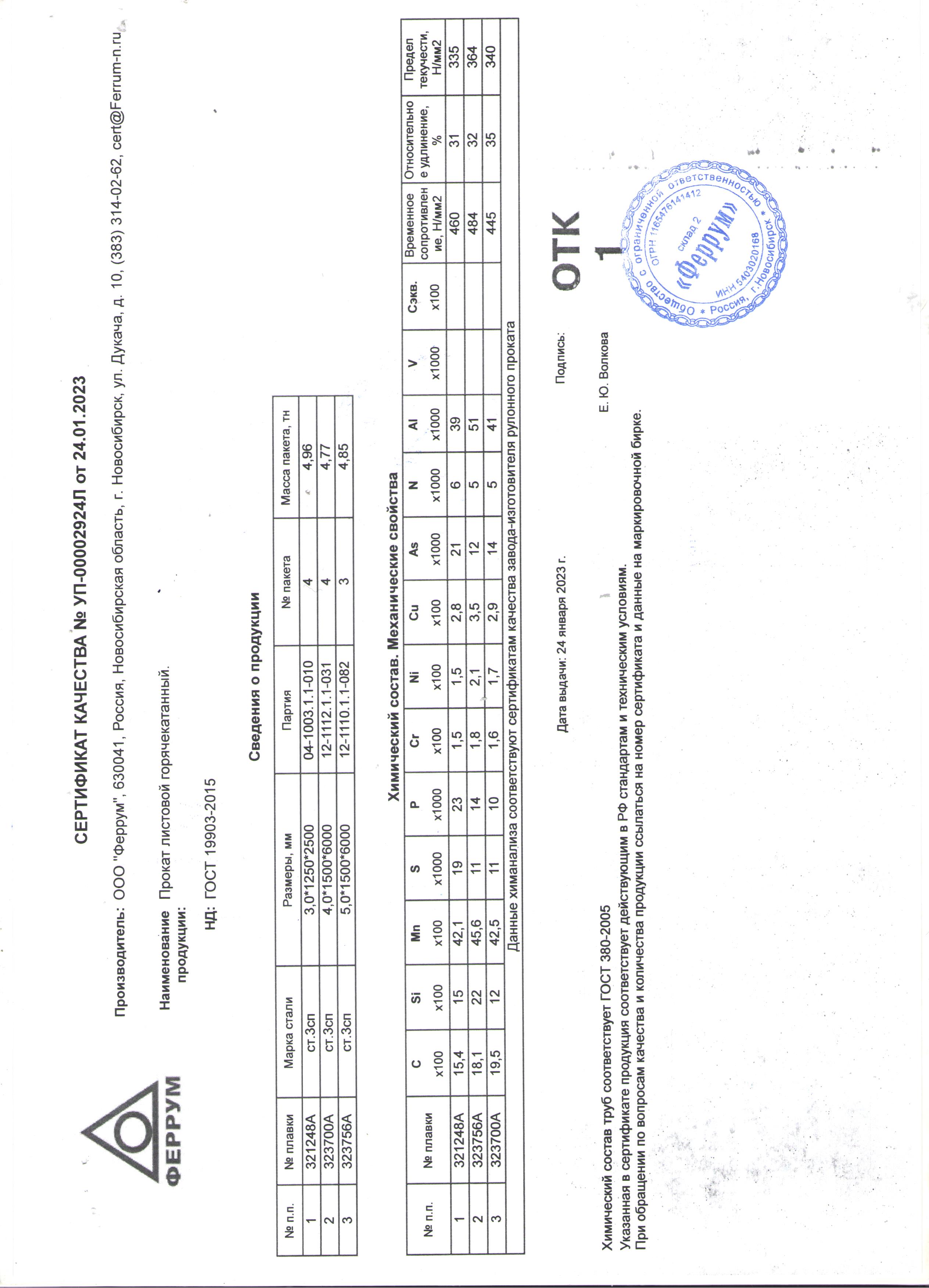 • Марка стали: Ст3 сп-5 (Ст3сп5)
