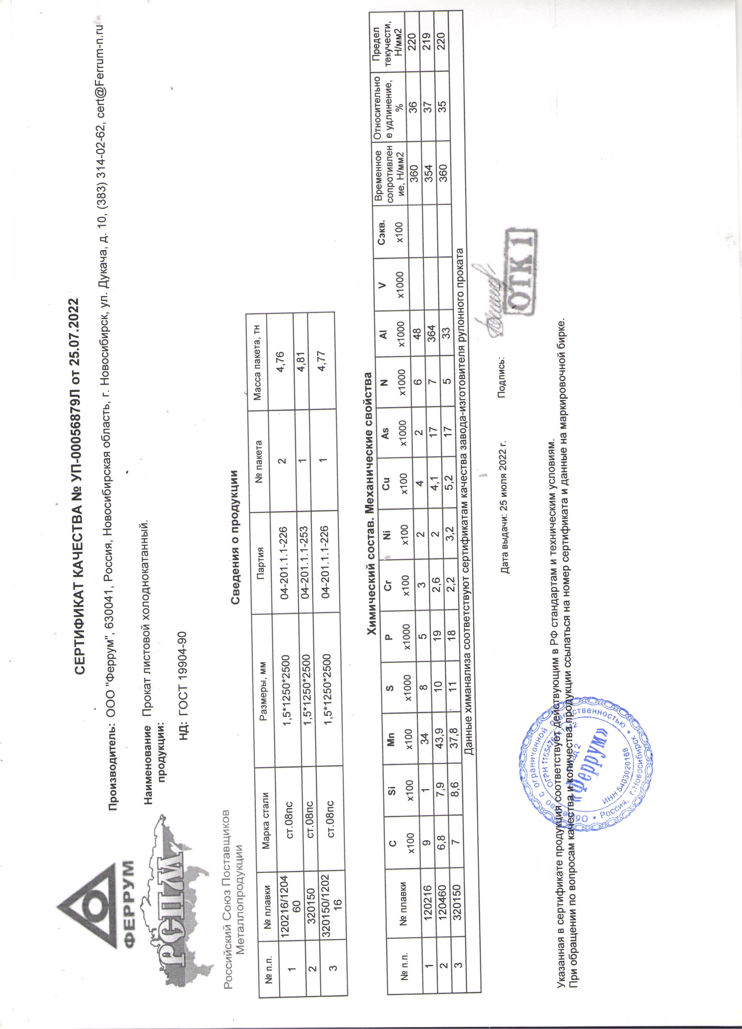 Лист 1,5 (1,25*2,5) х/к Ст.08ПС