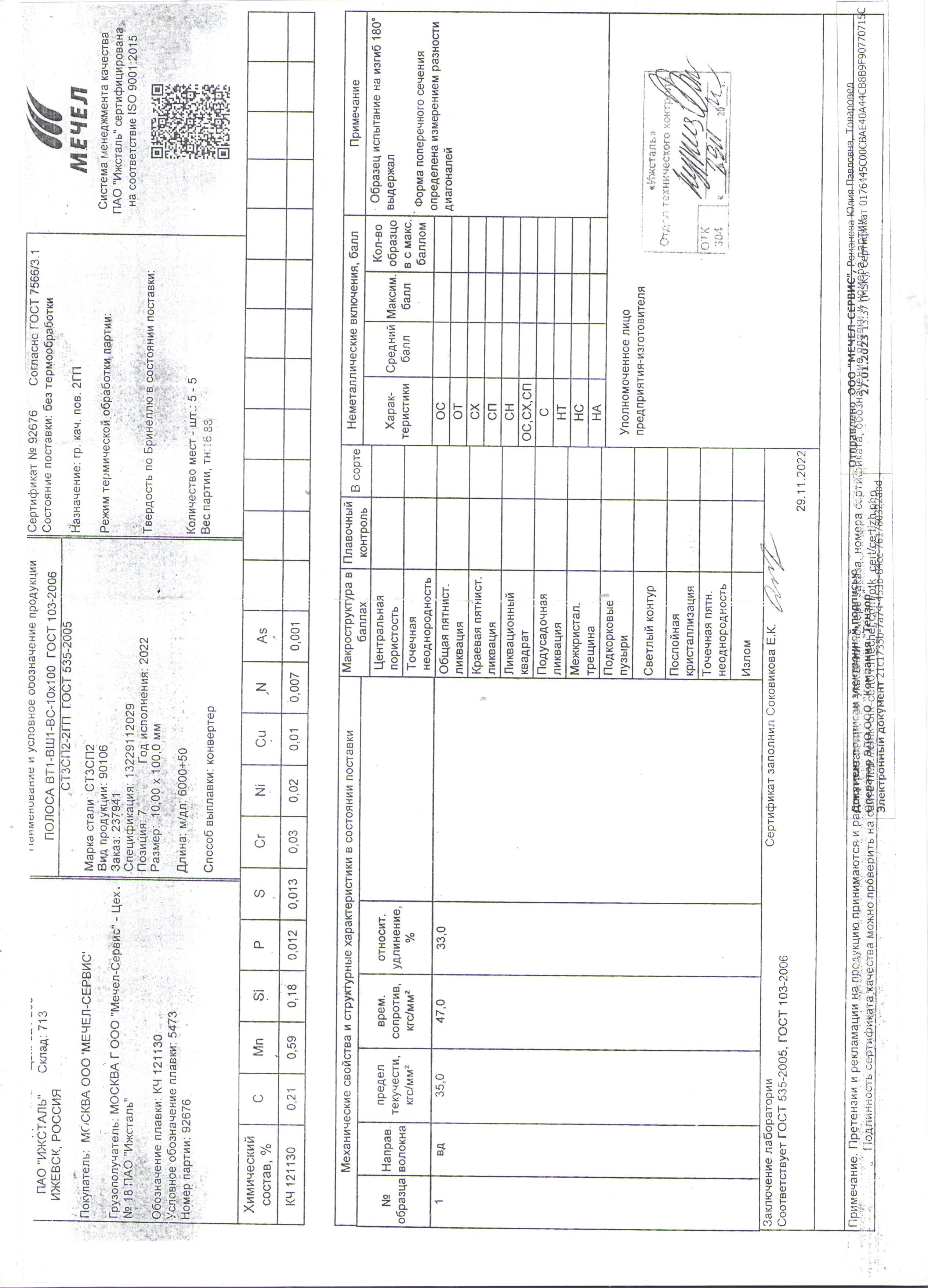 Полоса. 100/10 Ст.3 пс/сп ГОСТ 535-2005