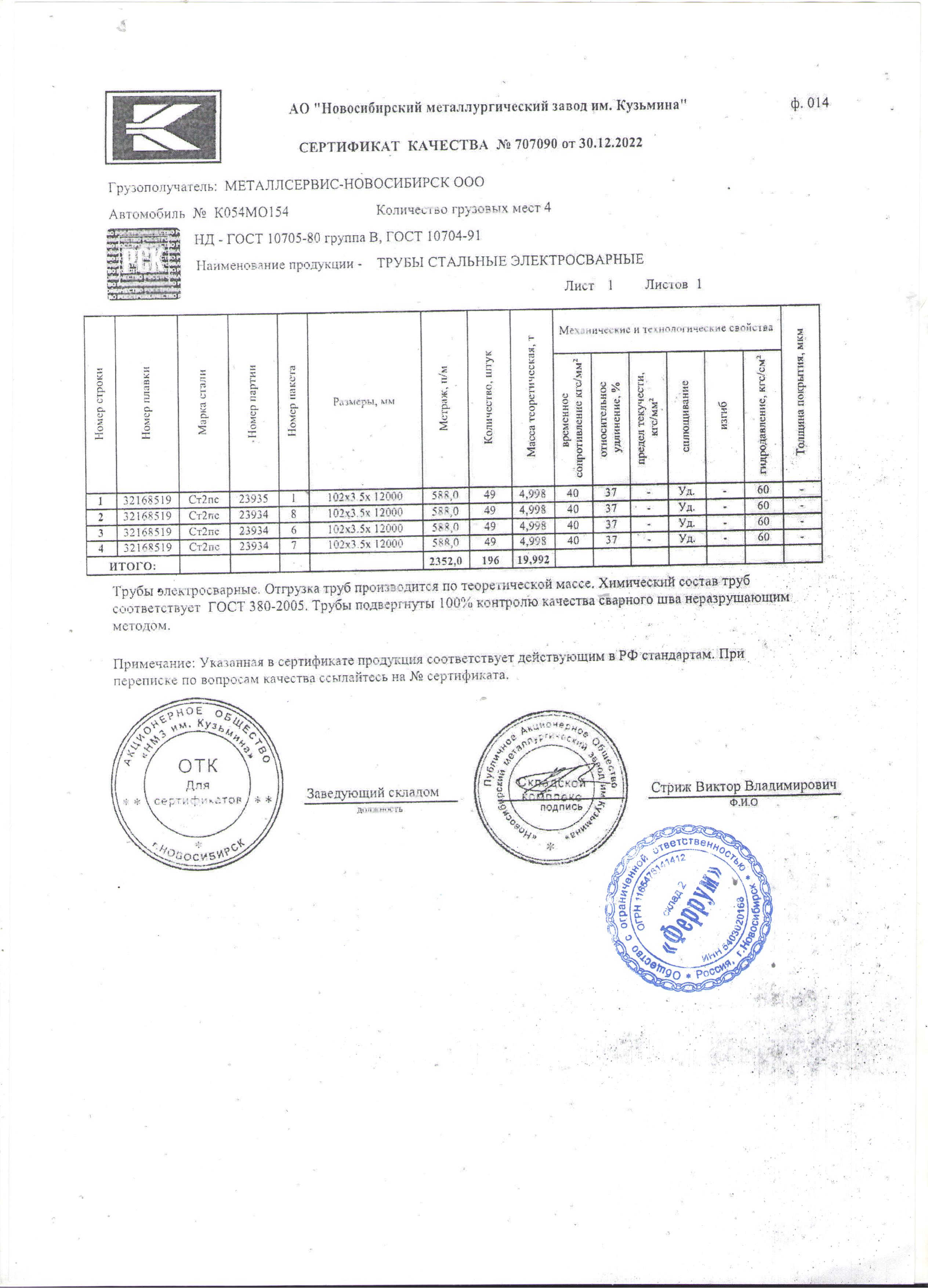 Труба 102/3,5 ГОСТ 10705-80 1/12м