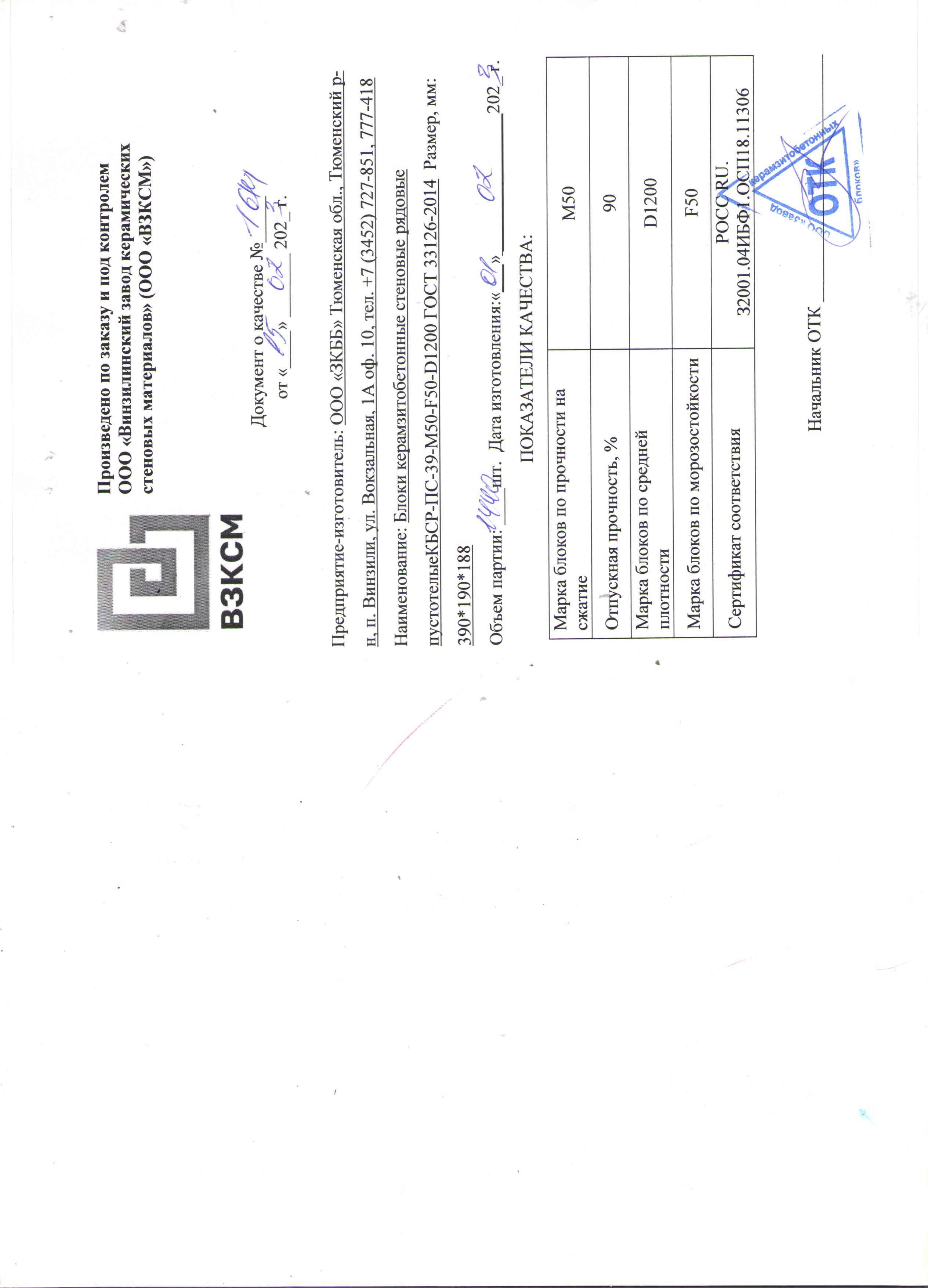 Сертификаты на товар